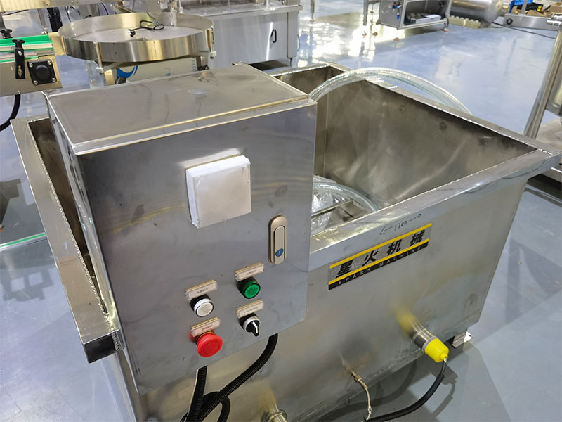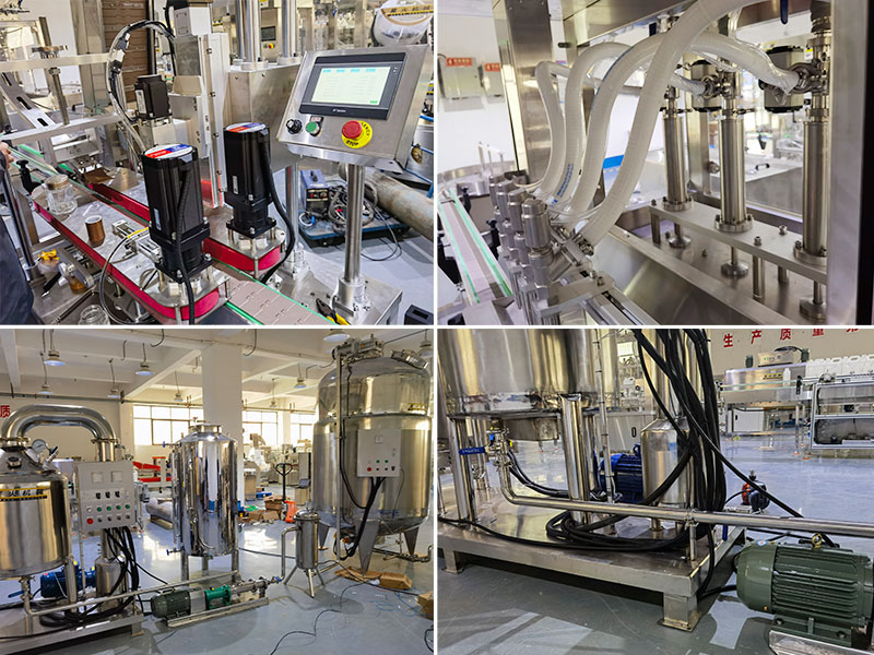 蜂蜜灌裝機旋蓋生產線整體運作模式采用PLC+HMI智能操作原理,通過一鍵式便捷式的操作,可提高蜂蜜從原材料直至成品輸出全部工序,操作人員僅需在觸控屏上選擇相對應的生產規格,蜂蜜灌裝機旋蓋生產線可自動開始投產,為了確保灌裝食材的安全性,這一整套機械設備全部采用不銹鋼材質打造,不僅擁有良好的密封性和耐腐蝕性,還可以延長設備的長久使用期限,蜂蜜灌裝機旋蓋生產線啟動后,振動電機帶動篩網振動,使的蜂蜜快速通過網篩,經過篩選后的蜂蜜需經過加熱才能保持流動狀態,以便于后續的灌裝,在進入投產工序時,理瓶機開始自動整理雜亂的瓶子排列程序,輸送帶則會帶動瓶子進入灌裝區域,在灌裝區域內紅外感應控制器將會實時檢測瓶子的進出,檢測到容器口時,灌裝頭下降,已經被提煉好的蜂蜜將會在全封閉式的狀態下快速充填進瓶、旋蓋、貼標的生產工序。
