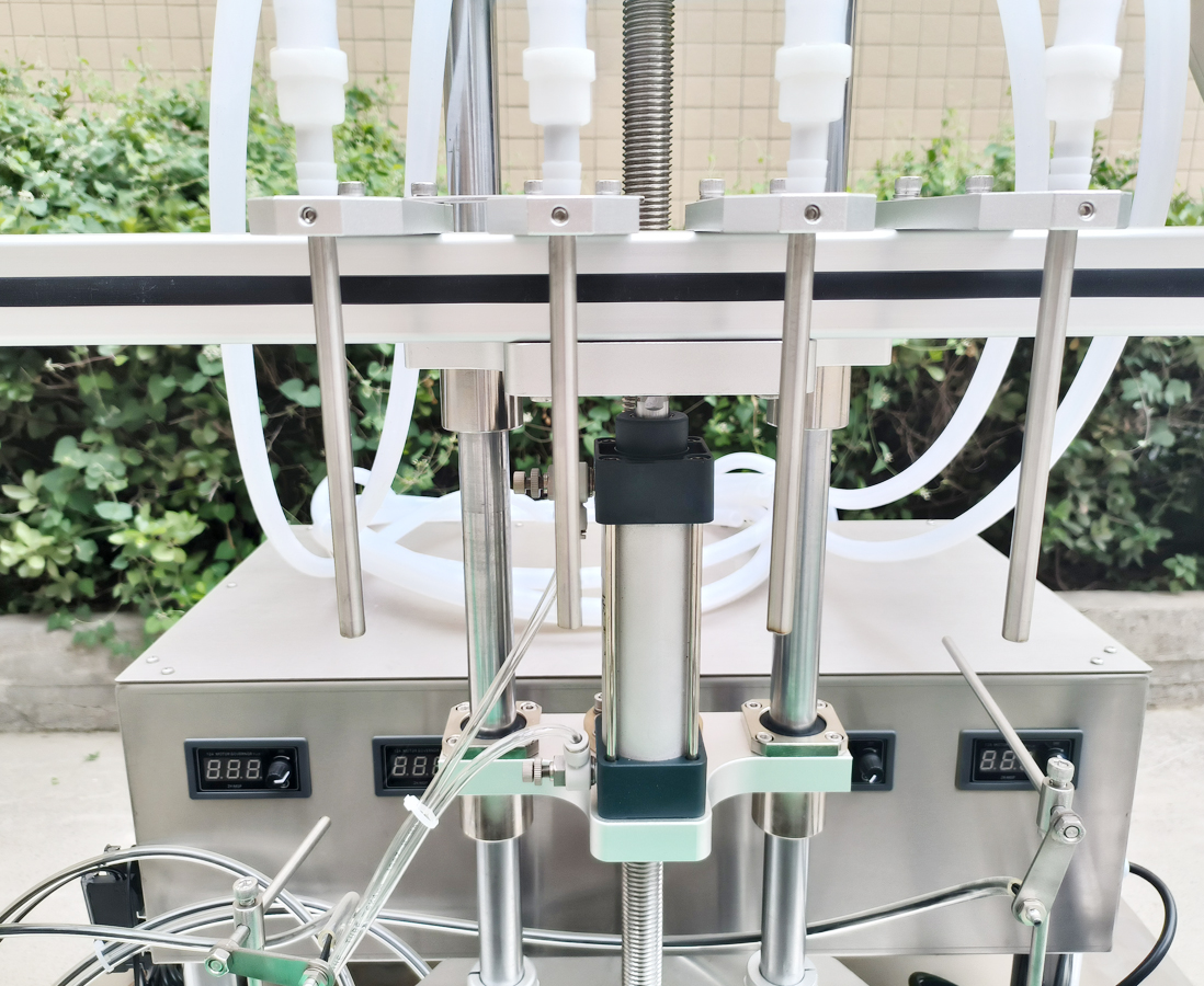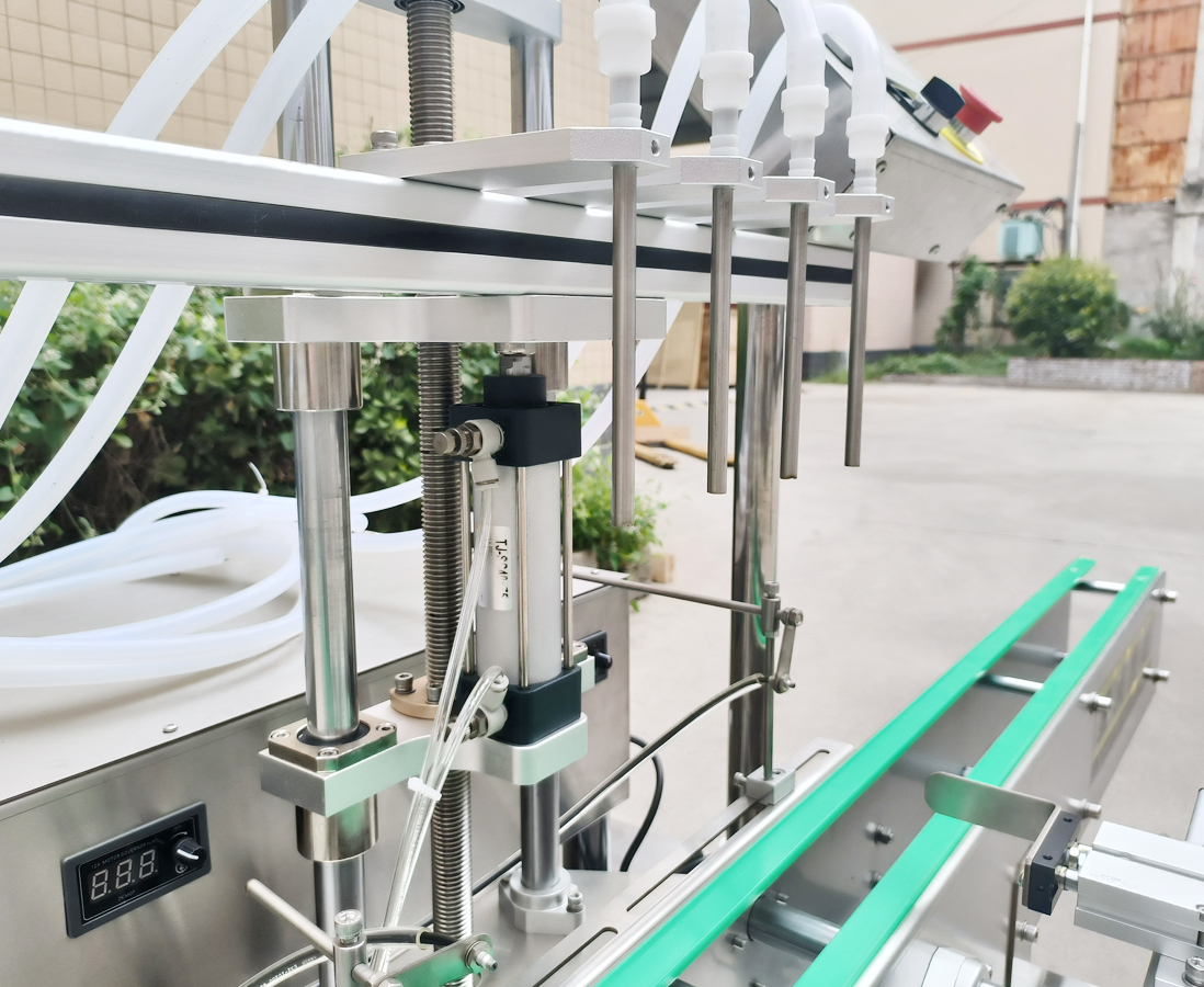 3.四頭同步灌裝,產(chǎn)能提升幾倍灌裝頭配備回吸裝置,停止瞬間自動(dòng)回吸管道內(nèi)的液體,不滴漏,不污染瓶身;